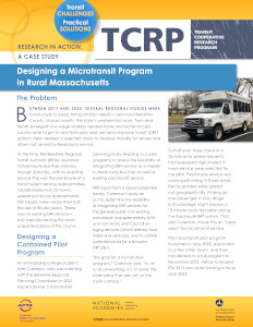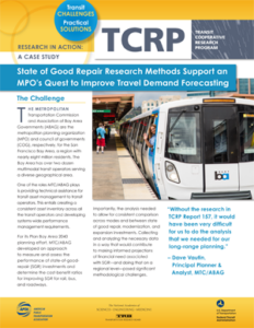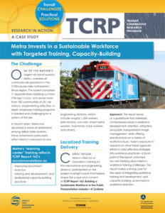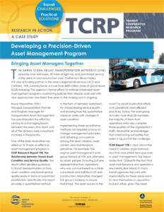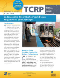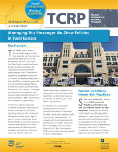 Sponsored by the Federal Transit Administration, the Transit Cooperative Research Program (TCRP) serves as one of the principal means by which the public transportation industry can develop innovative near-term solutions to meet demands placed on it. TCRP has an established reputation for providing useful reports and other tools to help public transportation practitioners solve problems and inform decision makers.