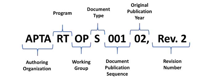 - APTA shall be used at the beginning of the numbering system indicating that the document was developed through an APTA Working Group,